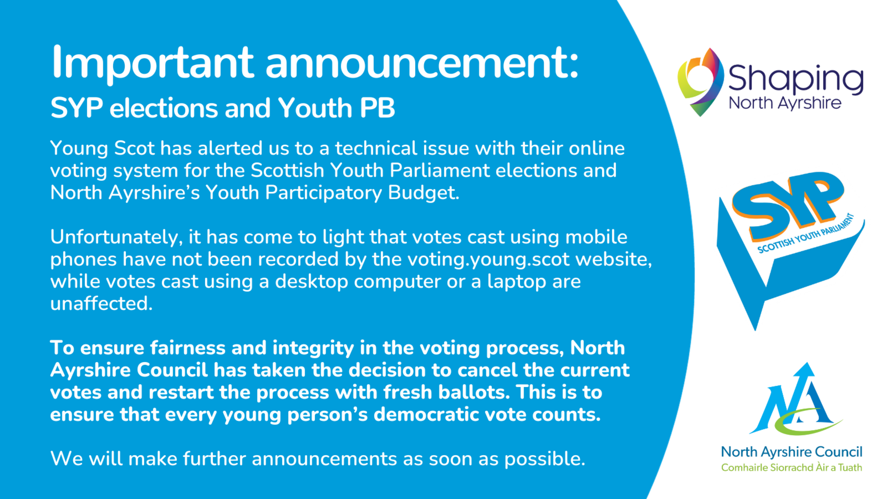 If you need support to vote as a young person, please get in touch using youthpb@north-ayrshire.gov.uk